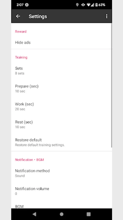 This app notifies you of the start of exercise and rest with a notification sound and supports Tabata training.