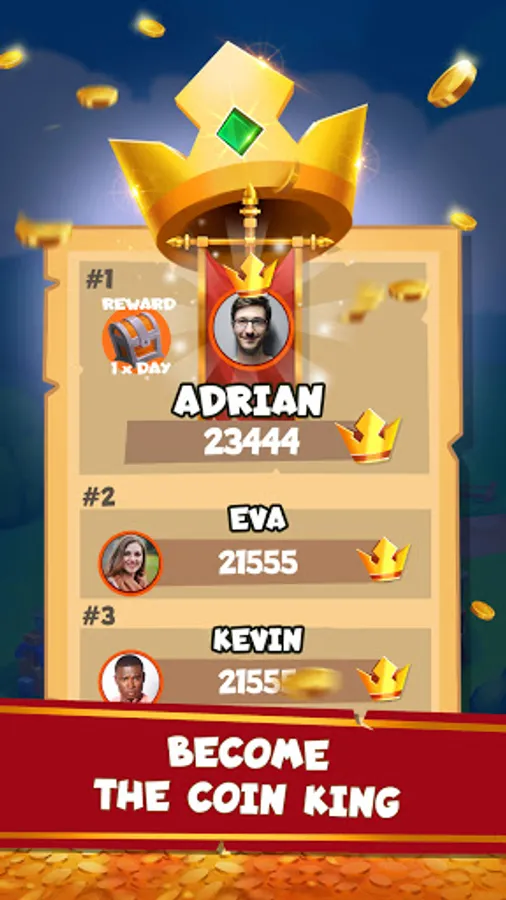 Rise from simple peasant to glorious COIN KING and fight your way to the top of your clan's leader board!