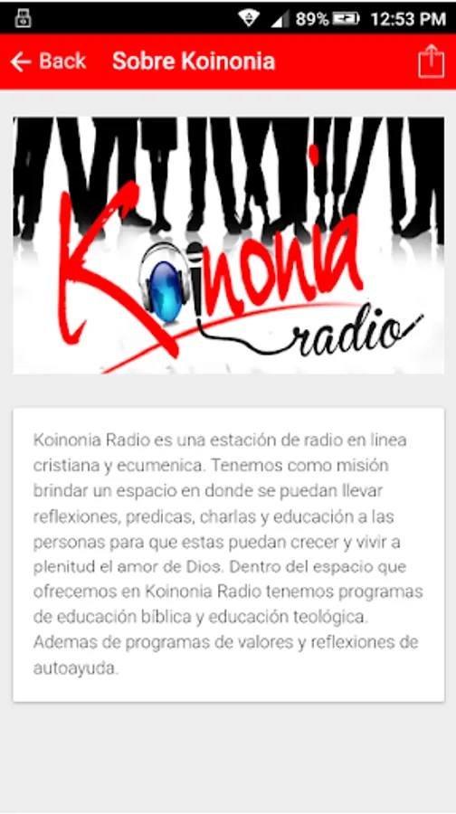 Koinonia Radio is a radio station in Christian and ecumenical line. Our mission is to provide a space where they can take reflections, sermons, lectures and education to people so that they can grow and live fully the love of God. Within the space we offer in Koinonia Radio programs we have biblical education and theological education. In addition to programs reflections values and self-help.
