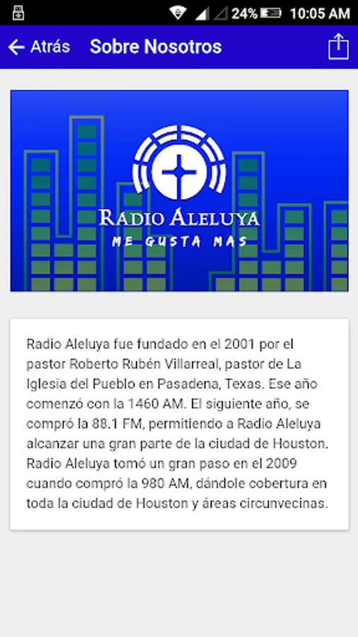 Hallelujah Radio was founded in 2001 by Pastor Ruben Roberto Villarreal, pastor of The Village Church in Pasadena, Texas. That year began with the 1460 AM. The following year, he bought the 88.1 FM, Radio Hallelujah reach allowing much of the city of Houston. Radio Hallelujah took a big step in 2009 when it bought 980 AM, giving you coverage throughout the city of Houston and surrounding areas.