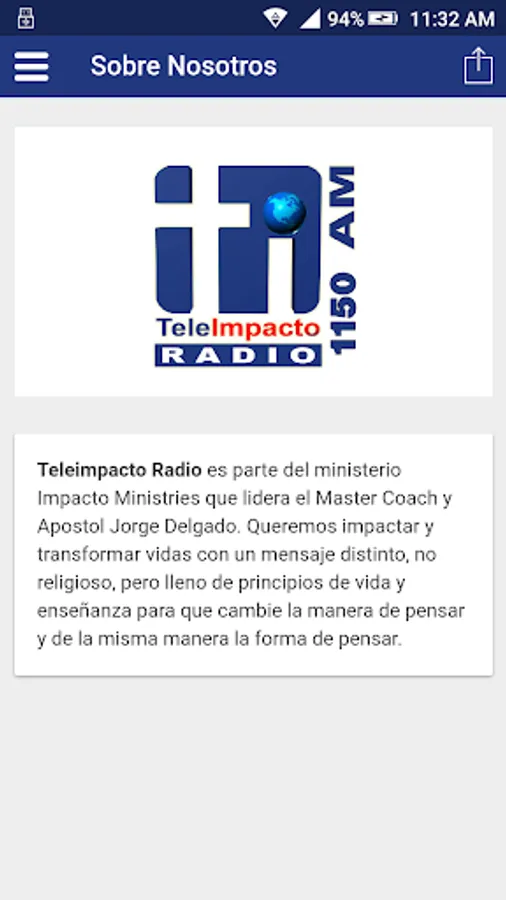Teleimpacto Radio is part of the Impact Ministries ministry led by Master Coach and Apostle Jorge Delgado. We want to impact and transform lives with a different message, not religious, but full of principles of life and teaching so that it changes the way of thinking and in the same way the way of thinking.
