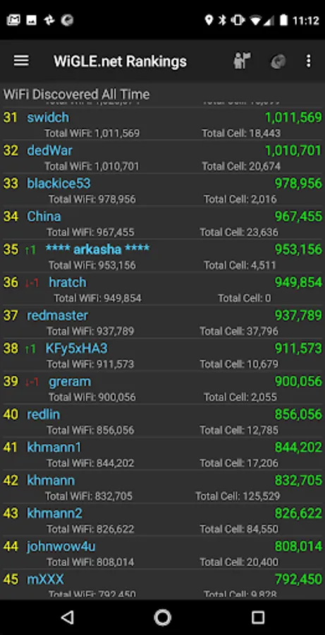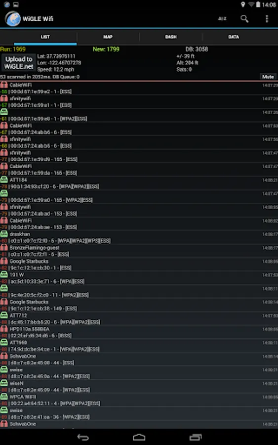 * Upload and compete on the global WiGLE.net leaderboard