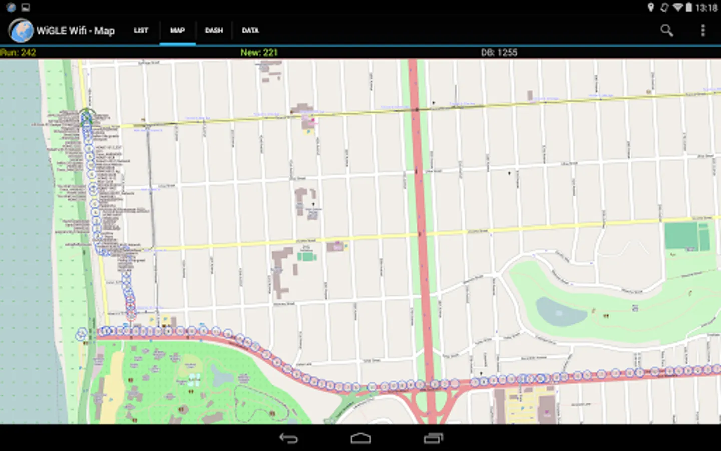 * Real-time map of networks found, with overlays from entire WiGLE dataset
