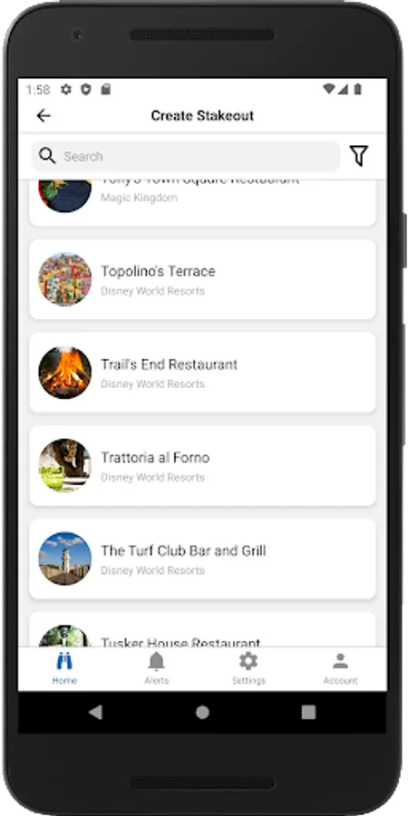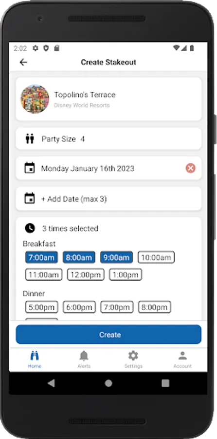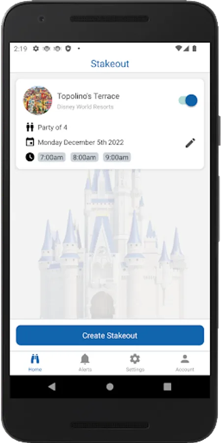 Stakeout notifies you when reservations at your favorite Disney park restaurants become available—and can even book them for you automatically with the new Concierge Stakeout feature!