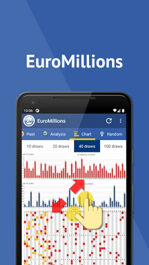 ● Provides charts on both frequency and overdue numbers for past 10, 20, 40 & 100 draws