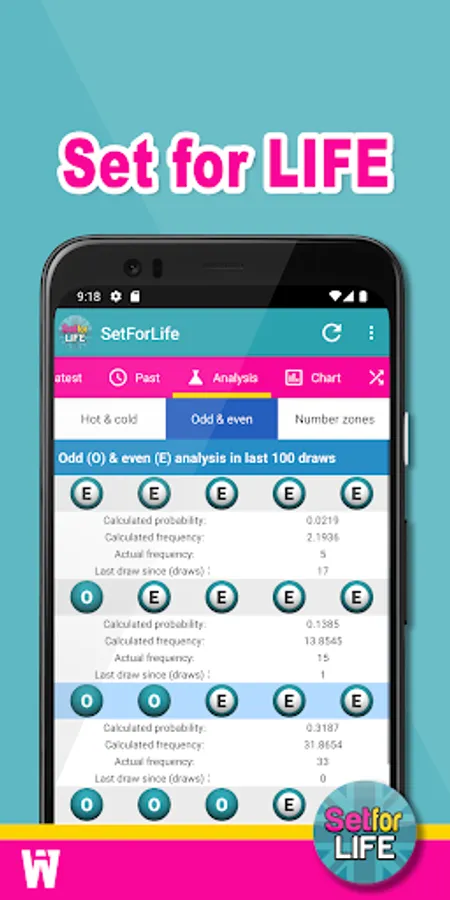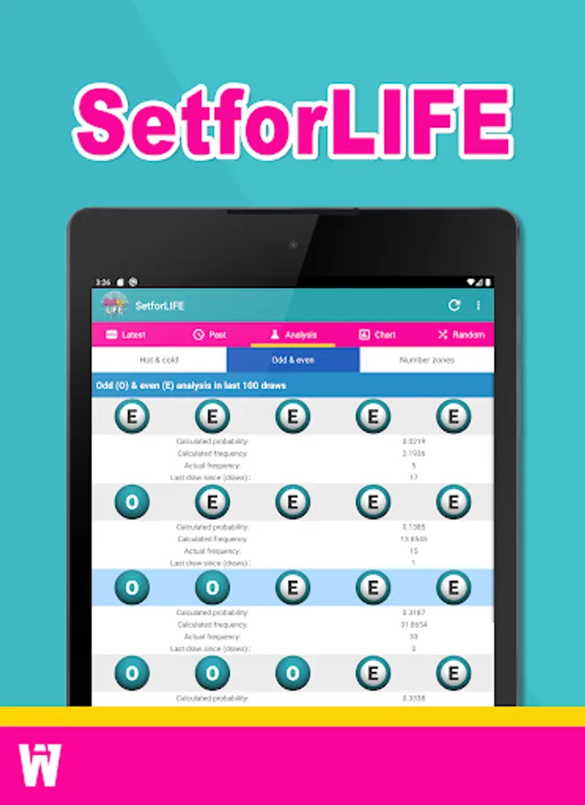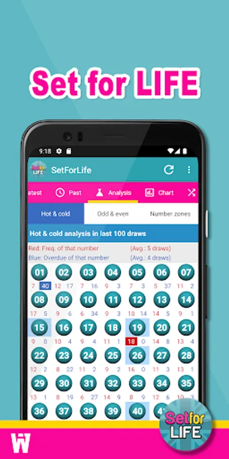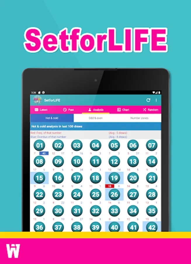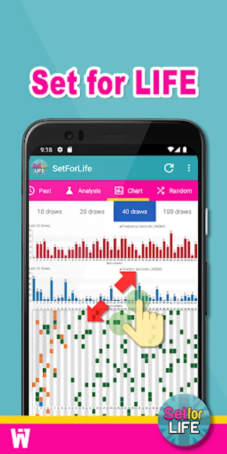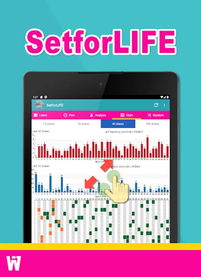 ● Provides charts on both frequency and overdue numbers for past 10, 20, 40 & 100 draws