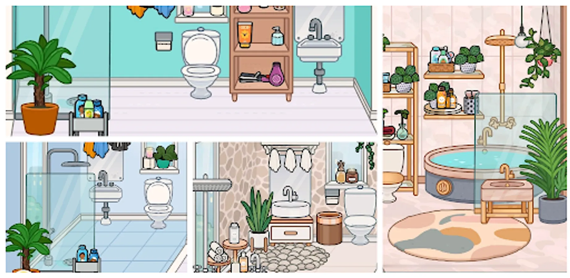 Toca Boca Bathroom Ideas app is free app that provides collection of aesthetic bathroom design ideas for designing toca boca bathroom. It has large collection of bathroom design ideas for toca boca. Featuring high quality images to helps you designing your bathroom to be more aesthetic.