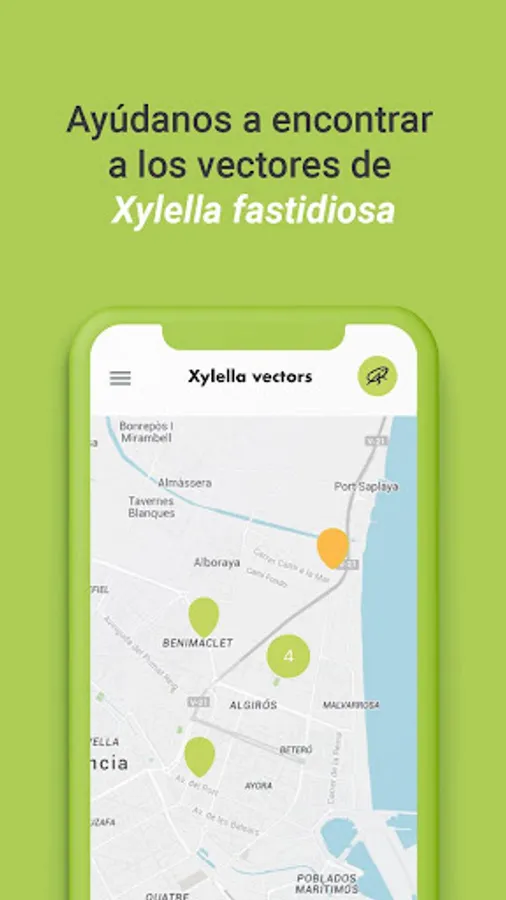This application allows you to consult vector appearances of Xylella Fastidiosa. In addition, it allows users to add geolocated photos for specialists to categorize.
