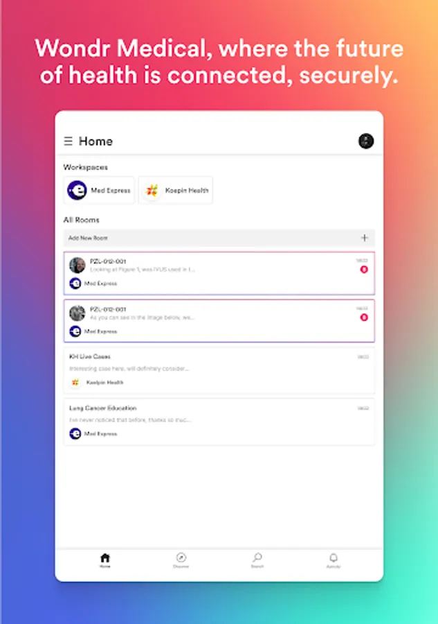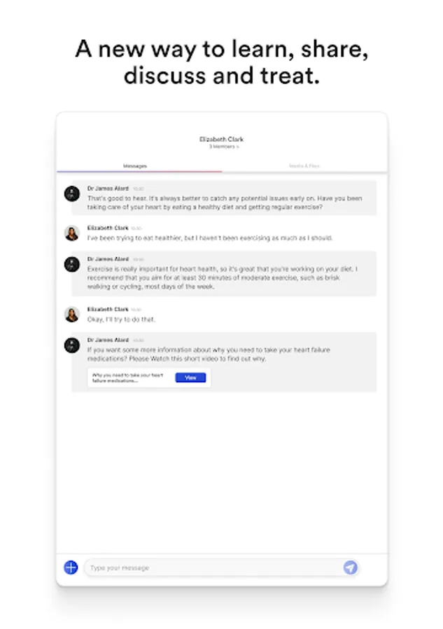 Our mobile and web app enables health professionals to connect and collaborate in a secure and compliant way. The App enables messaging, file-sharing, video meetings and live-streamed events in the same place - with a custom search engine built for medical users.