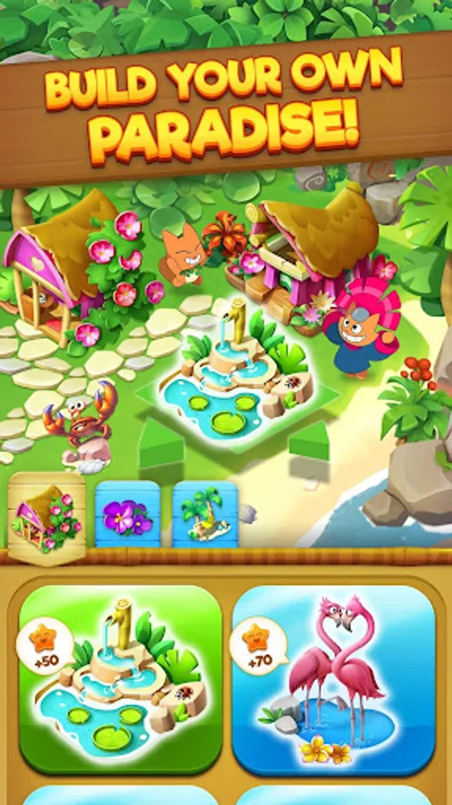 Discover beautiful sunny levels on a paradise island with fun free match 3 puzzle games