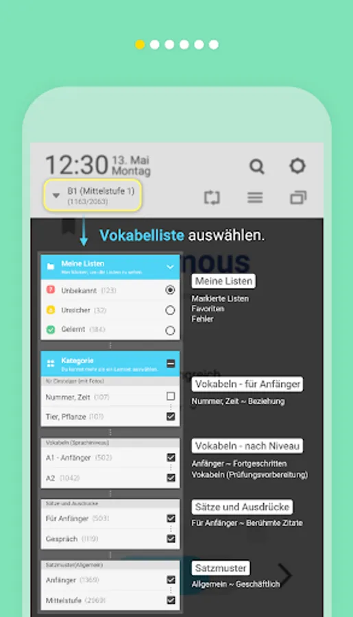 Learn words and phrases suitable for your level. (More than 10,000 words for beginners to advanced)