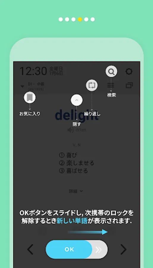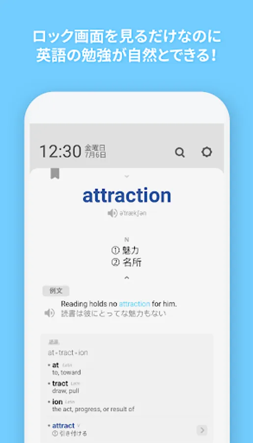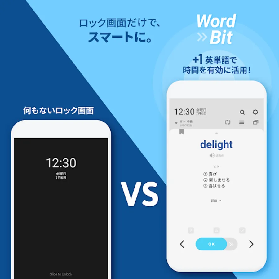 WordBit provides the optimally sized content for the lock screen. From now on, you can learn in an instant. So you don't have to stop doing what you want to study!
