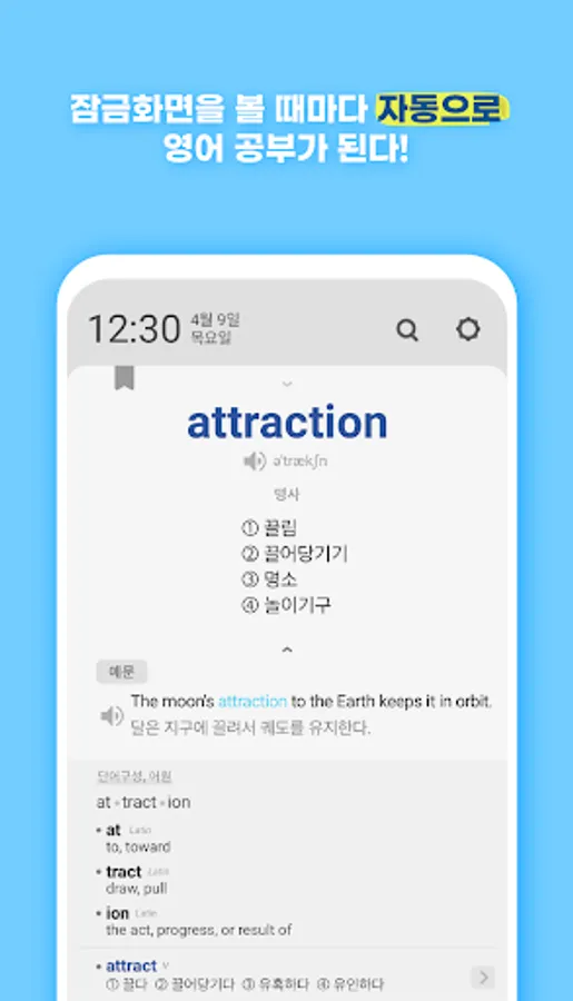 Wordbit provides all content so that it fits perfectly on the lock screen and can be viewed at a glance. Rather than simply showing the app on the lock screen, we provide it in a perfect size and shape that makes it easy to eat at a glance. So it doesn't require more attention than necessary. Do what you normally do, but just keep an eye on it for a few seconds!
