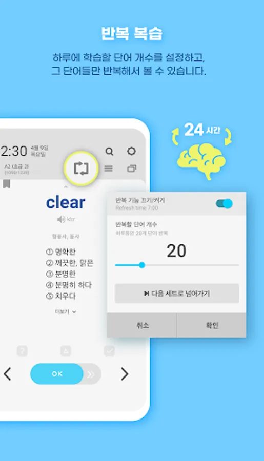 ■ Review delivery system using forgetting curve: Once a day, words learned yesterday, 7 days ago, 15 days ago, and 30 days ago are automatically and funly reviewed through games. If you just review it lightly, you will remember it really well.