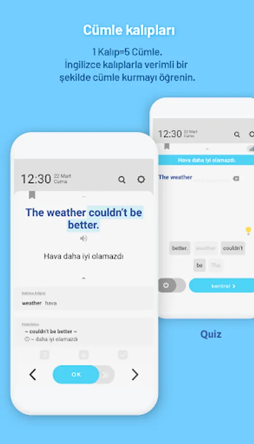 😃 Now there is not only a word quiz but also a sentence quiz. You should try our new feature as you can improve your writing and speaking skills thanks to the sentence quiz.