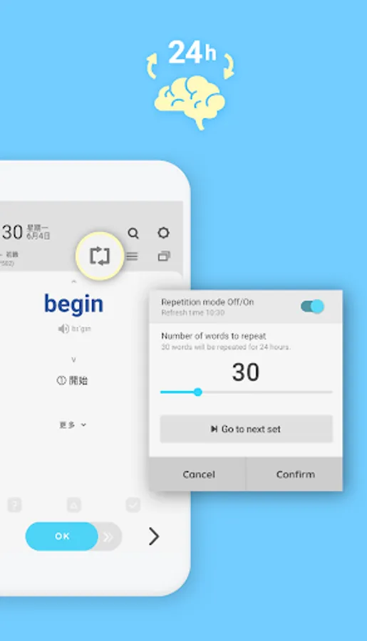 : Once a day, the words learned yesterday, seven days ago, fifteen days ago and thirty days ago will be automatically reviewed through interesting games. If you review it gently, you will remember it well.