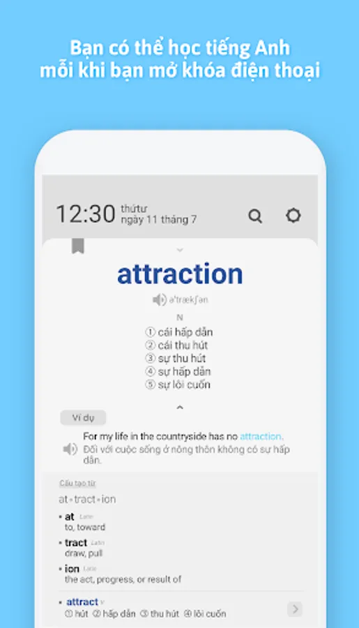 WordBit condenses the content perfectly just enough to display on the phone's lock screen, from now on learning becomes extremely easy. As fast as the blink of an eye, you don't have to stop what you're doing.