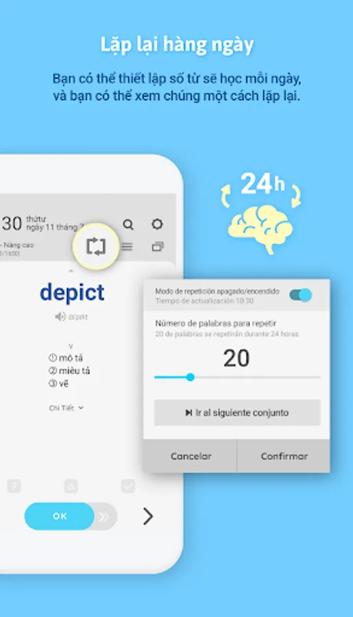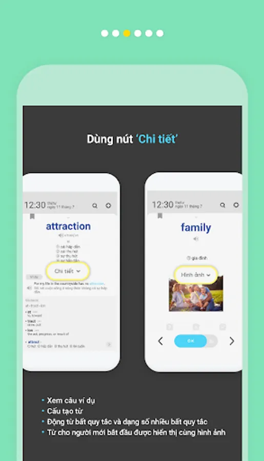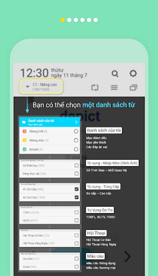 You can choose to learn words and phrases that suit your level. (More than 10,000 words from basic to advanced)