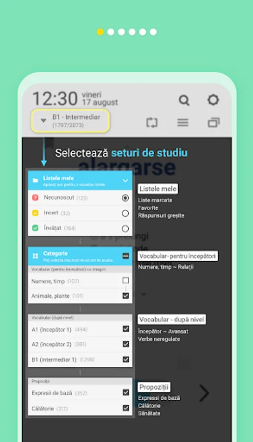 (2) If you want to temporarily disable the automatic study mode of the application, you can do it by going to Settings.