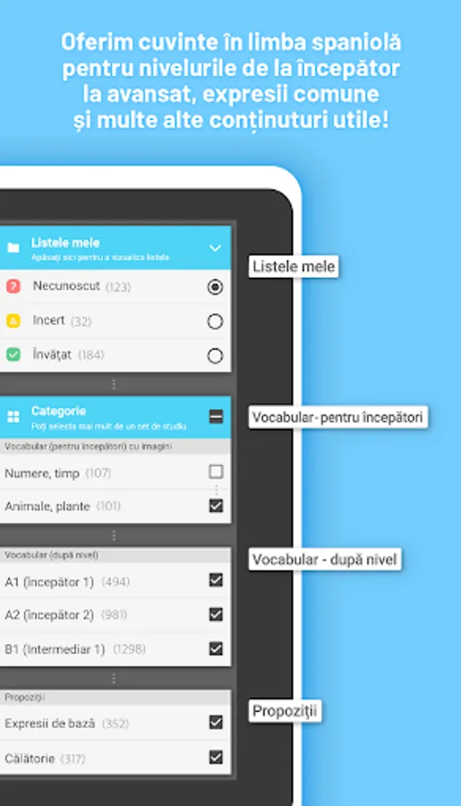 It gives you the opportunity to learn in a fun and enjoyable way with photos, slide mode and tests included!