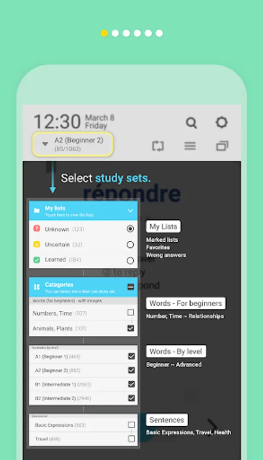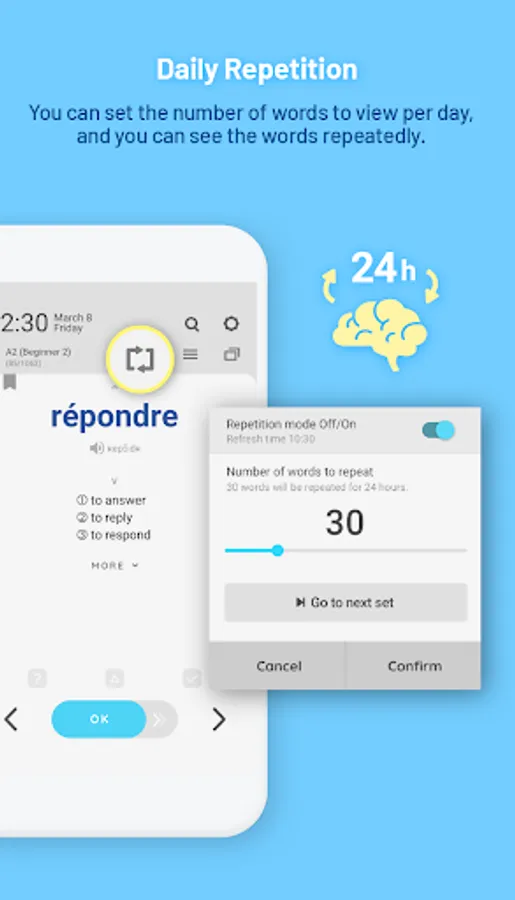 When you check messages, watch YouTube, or simply check the time, you can study dozens of words and sentences a day! This will accumulate to more than a thousand words per month, and you'll learn automatically and unconsciously.