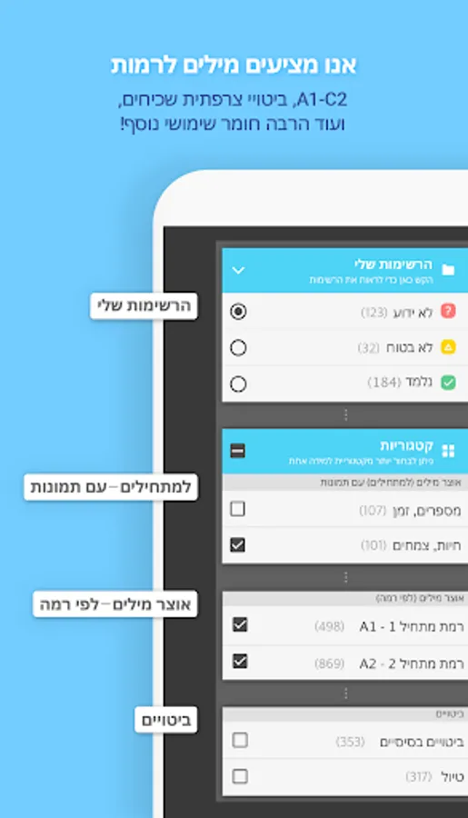 ■ Custom word classification function: You can check learned words and remove them from your study list.