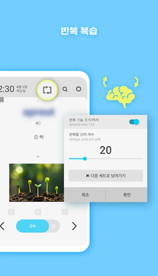 ■ Review delivery system using forgetting curve: Once a day, words learned yesterday, 7 days ago, 15 days ago, and 30 days ago are automatically and funly reviewed through games. If you just review it lightly, you will remember it really well.