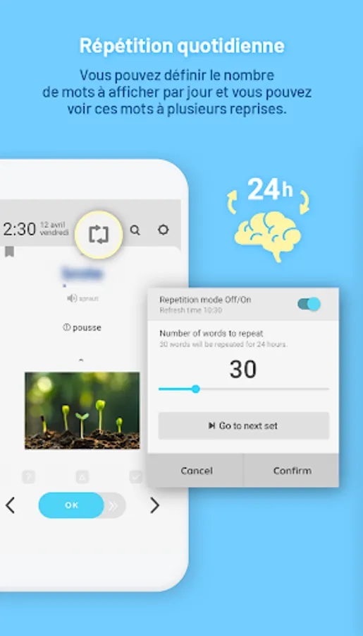: Once a day, the words learned yesterday, 7 days ago, 15 days ago and 30 days ago are automatically reviewed in a fun way through games. If you examine it lightly, you will remember it very well.