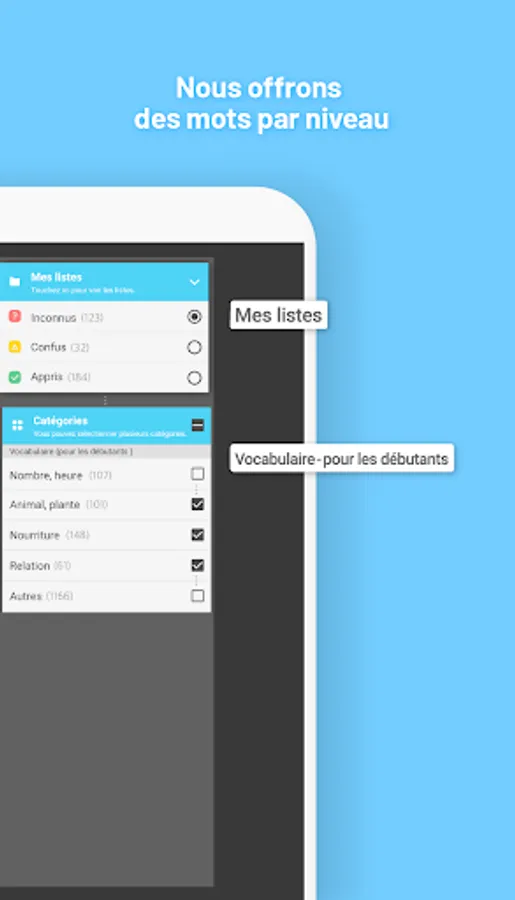 ■ You can have fun studying while checking your skills with the matching game, multiple choice quiz, spelling quiz and screen mode.