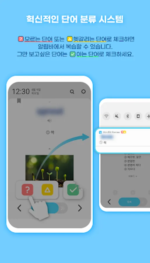 ■ Review delivery system using forgetting curve: Once a day, words learned yesterday, 7 days ago, 15 days ago, and 30 days ago are automatically and funly reviewed through games. If you just review it lightly, you will remember it really well.