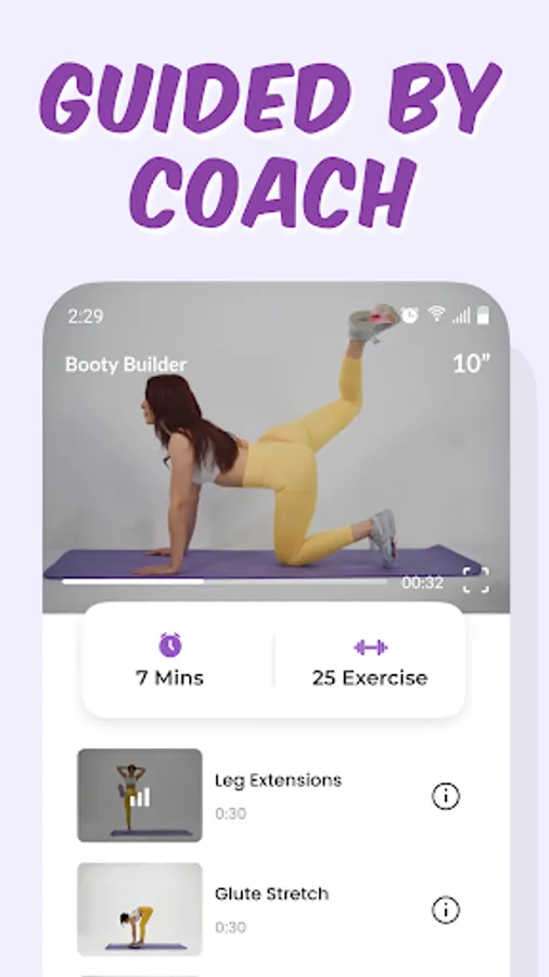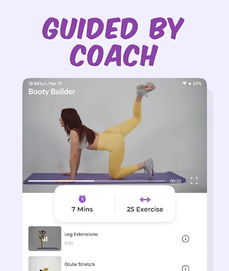 - Personal trainer with voice and video instructions to coach you along the way. Better form, better results, bigger butt!