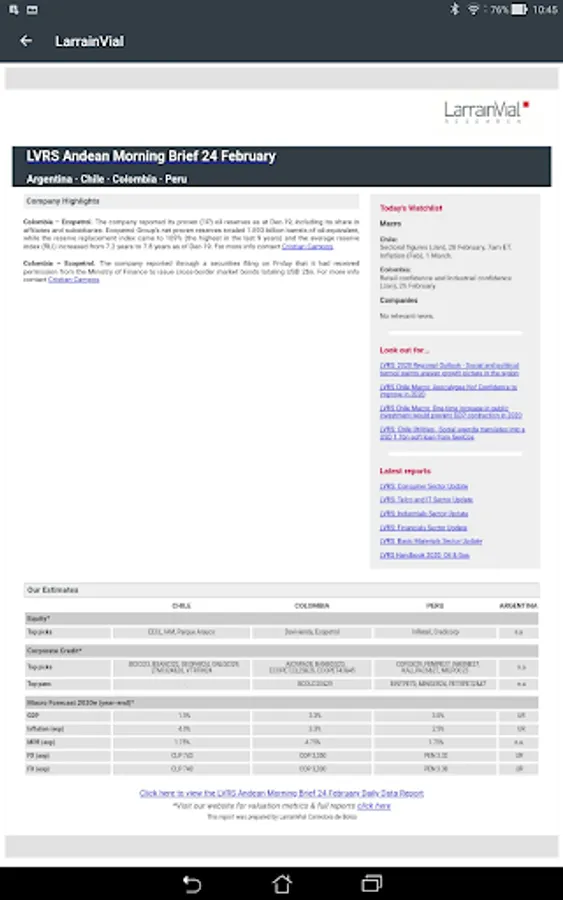 Founded in Chile in 1934, LarrainVial is an independent financial services firm with offices in Chile, Peru, Colombia, Argentina and the United States.
