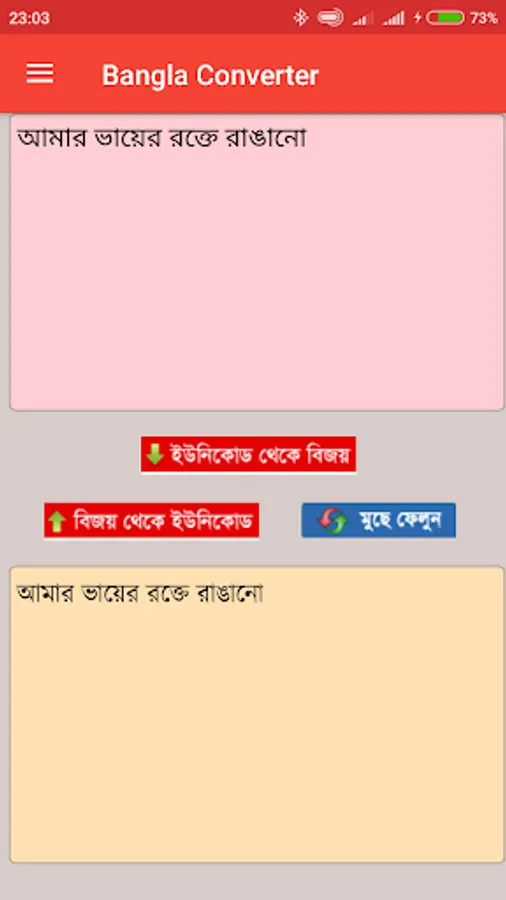 The first offline Bengali / Bengali to Unicode and Unicode to Bijoy convertor for android phone.