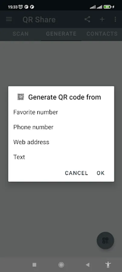 Share and receive any text-based data (vCard, mobile number, web address, plain text etc.) locally without Internet, Wi-Fi or Bluetooth. This the easiest way to share any text. just select the mobile number, or type or paste the text and generate QR code. Receiver will start the scanner and scan the QR code.