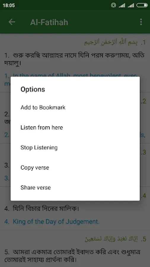 • Start listening from any verse: You can start listening to The Holy Quran from any verse. Just long press on that verse and you will know what to do.