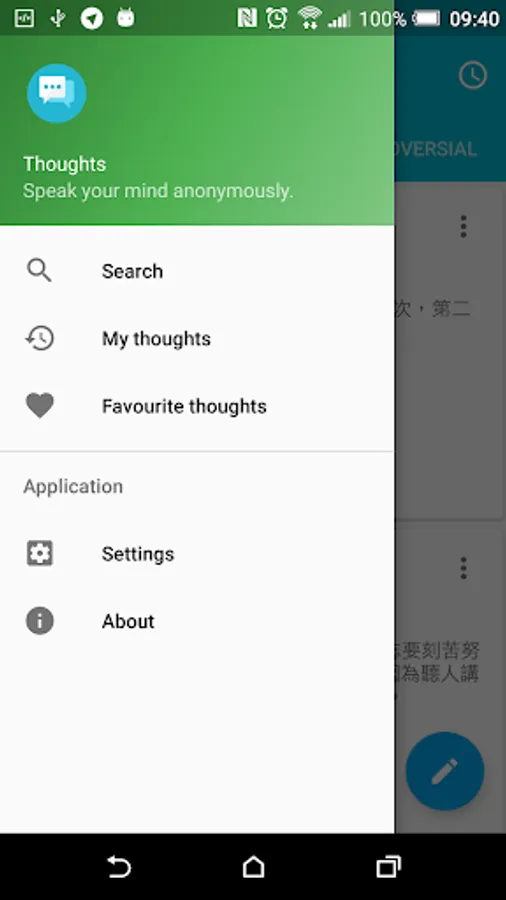 Inspired by "Secret" pages among Hong Kong, Thoughts is an application that allows you to speak your little secret thought anonymously.