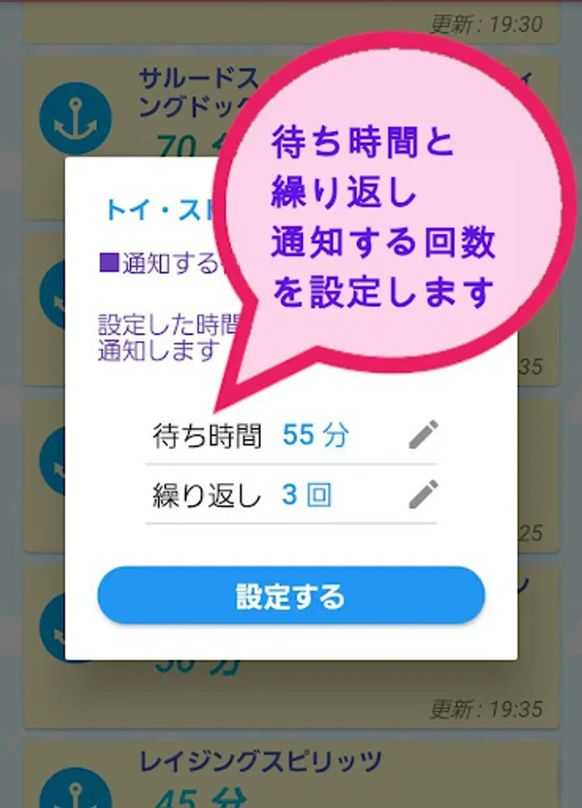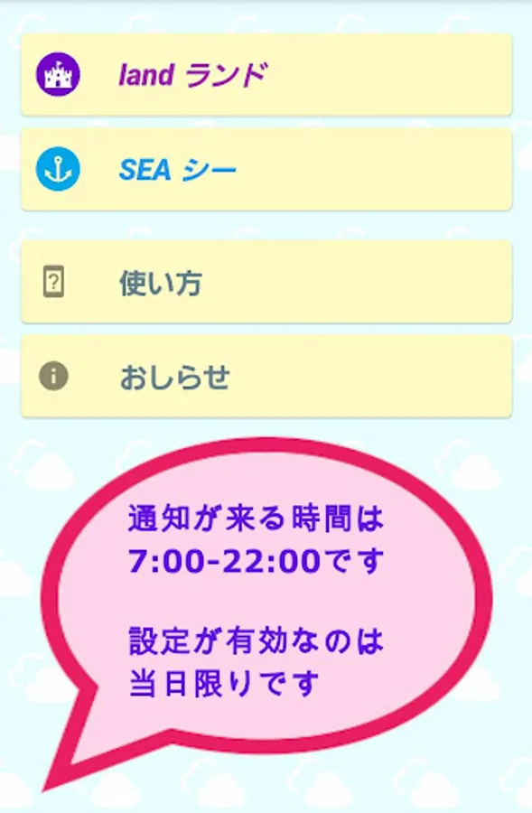■ Please set the attraction waiting time and the number of notifications from the setting screen.