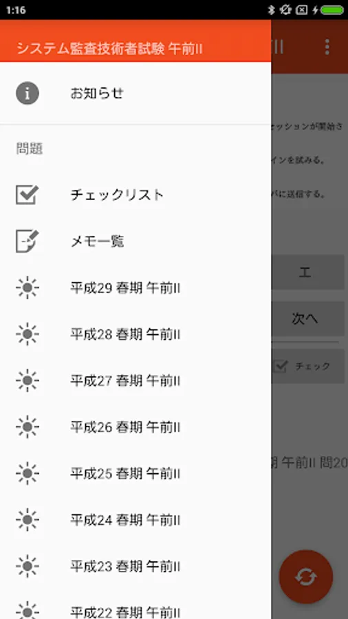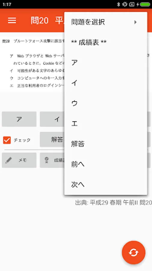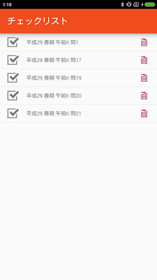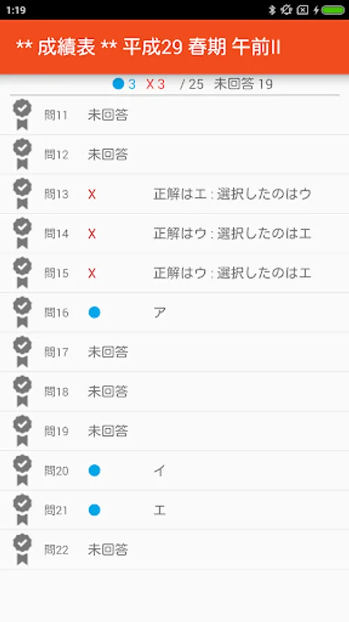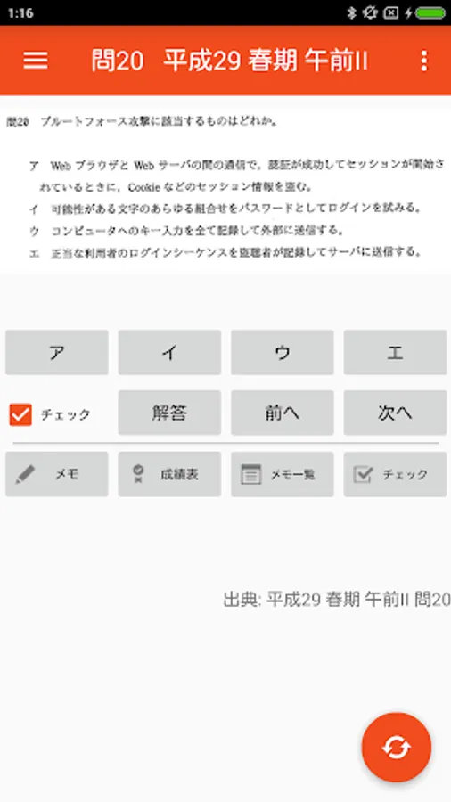 - 気になる問題、間違った問題にチェックをつけておけます。