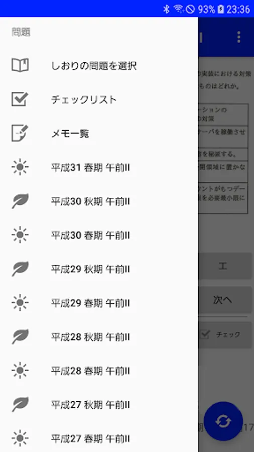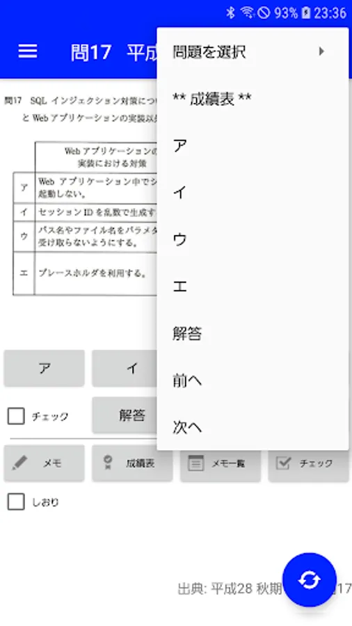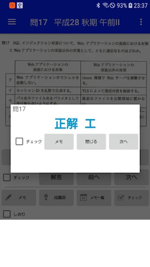 - 気になる問題、間違った問題にチェックをつけておけます。