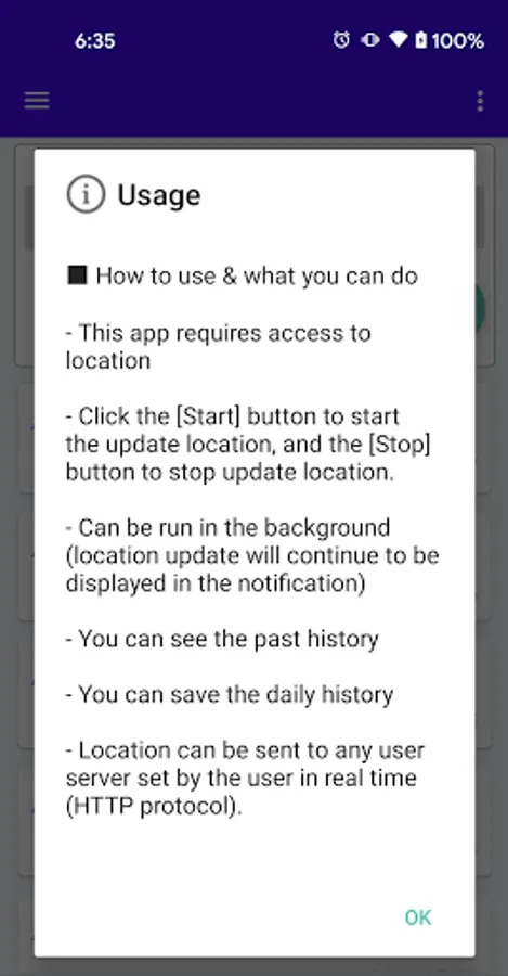 - Can be run in the background (location update will continue to be displayed in the notification)