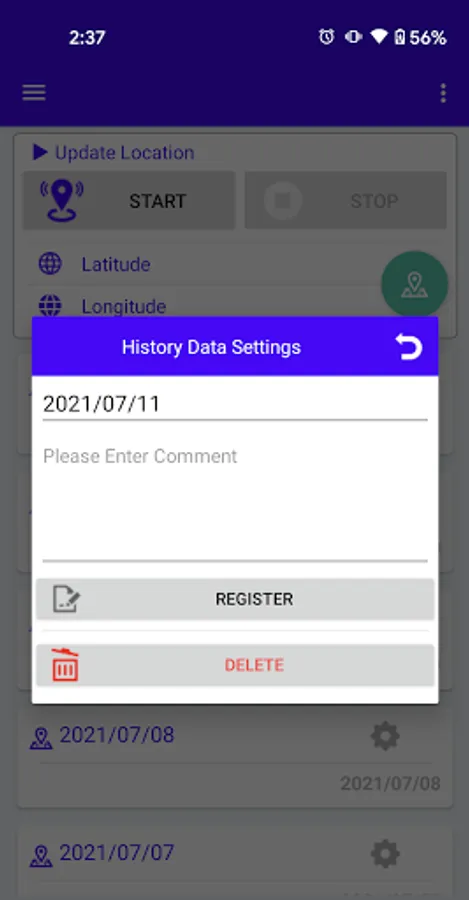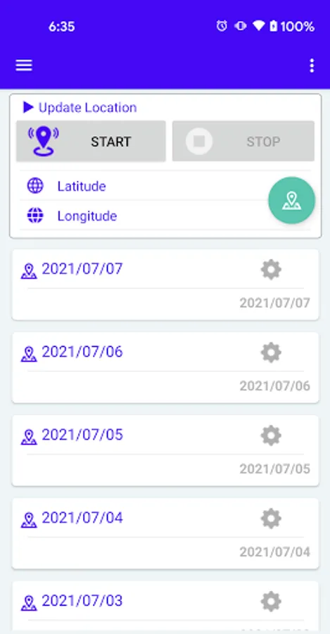 - Click the [Start] button to start the update location, and the [Stop] button to stop update location.