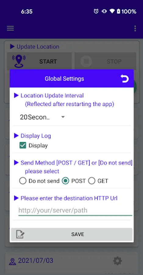 - Location can be sent to any user server set by the user in real time (HTTP protocol).