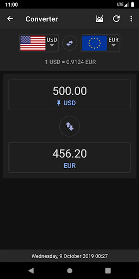 The currency converter comes with a handy in-built calculator and you can choose to convert using the current live exchange rates or with your own custom values.