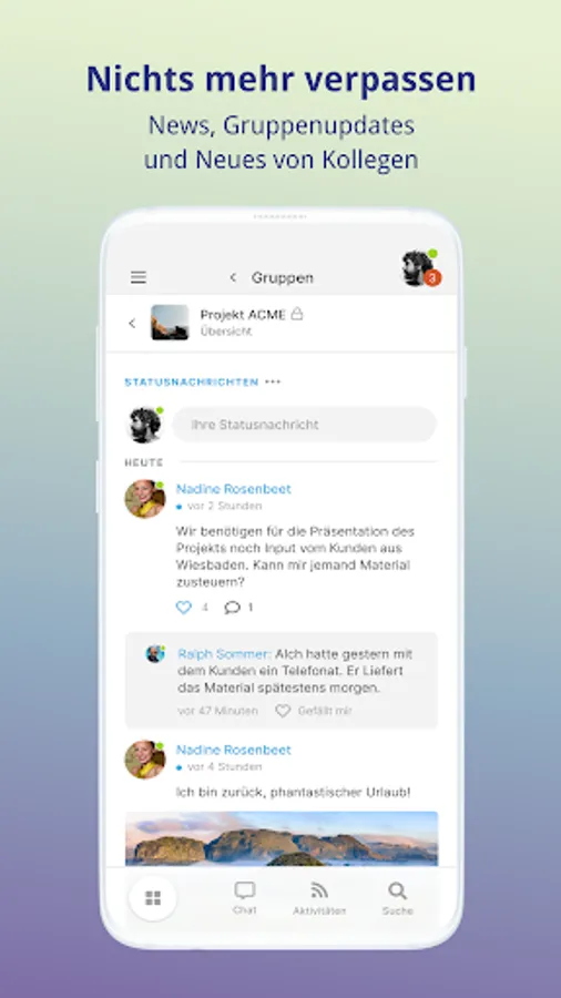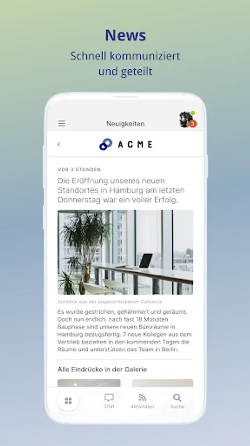 The Blueend intranet directly on your smartphone. Log in once and the latest information from colleagues is always at hand! News, chat, notifications: Everything included!