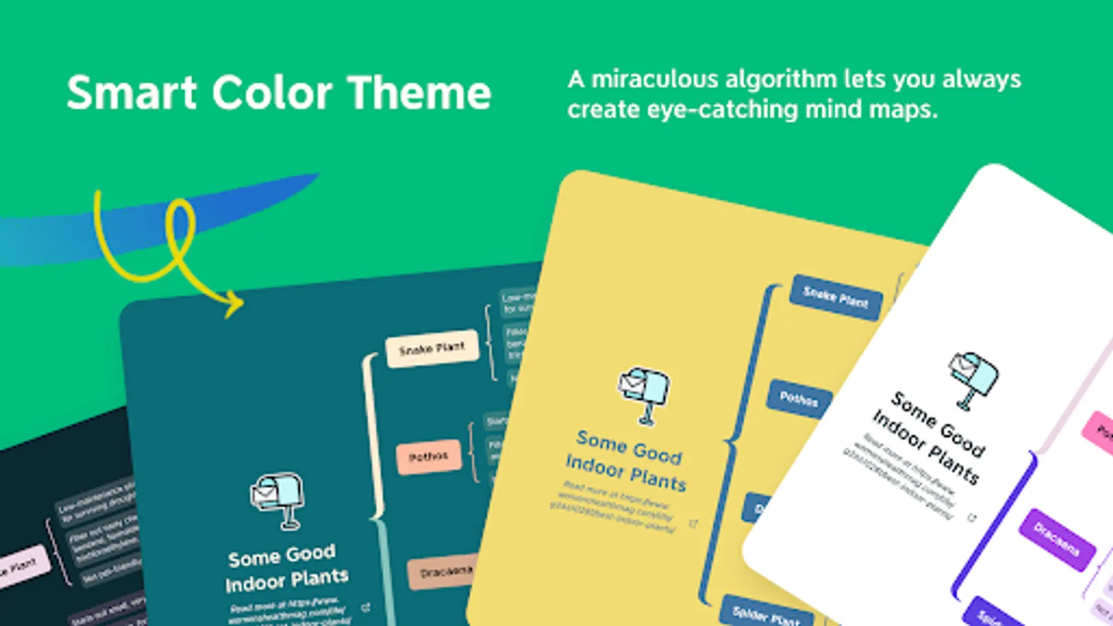 • Smart Color Theme: Build an aesthetically appealing mind map with a smart algorithm effortlessly.