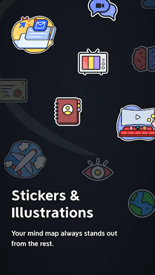 • Illustrations: Visualize your mind map without text with 40 illustrations covering over 13 categories.