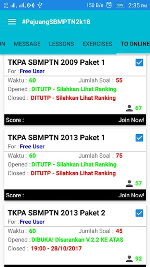 Try Out 2018 is an application to practice in completing SBMPTN and PKN STAN.