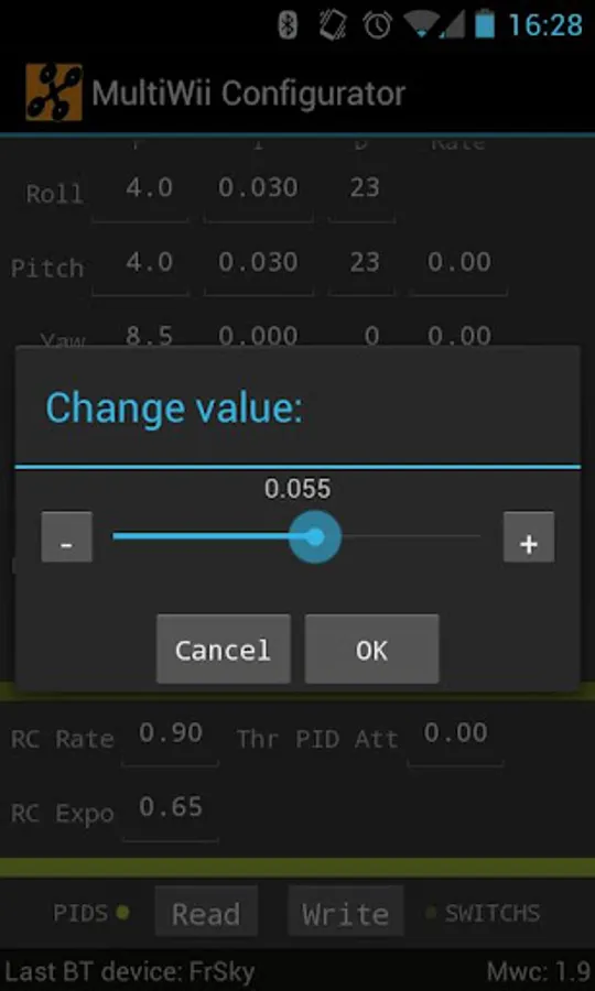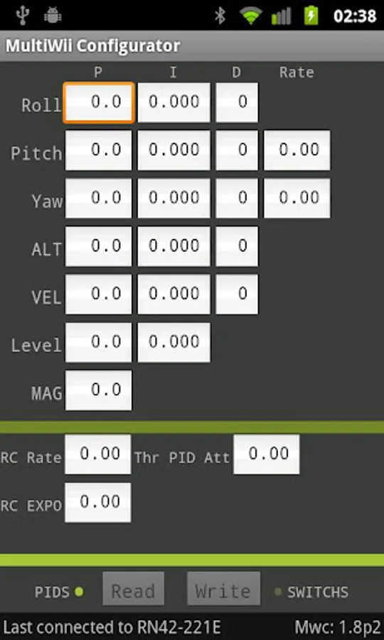 To use this tool it is required to have a Bluetooth dongle to connect into the MultiWii board and of course the MultiWii software running.
