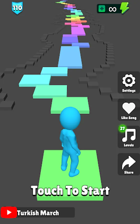 Game let's you play piano tiles in 3D. This is the only 3D music runner game with realistic physics!