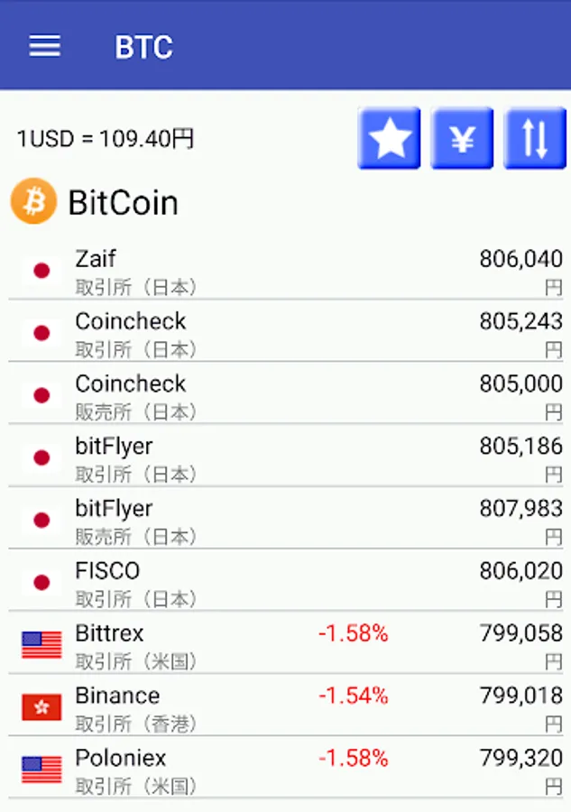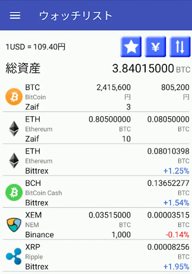 ・取得した価格をもとに、円やドルなどの法定通貨に自動変換して確認できます。あらかじめ基準にする取引所を設定しておくことで、ビットコイン、イーサリアム、ビットコインキャッシュ建てに変換することも可能です。